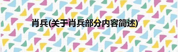 大家好,今天小方来说说一篇关于肖兵,关于肖兵部分内容简述的文章,那么现在就为大家来简单介绍下,希望对各位小伙伴们有所帮助。
