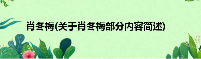大家好,今天小方来说说一篇关于肖冬梅,关于肖冬梅部分内容简述的文章,那么现在就为大家来简单介绍下,希望对各位小伙伴们有所帮助。