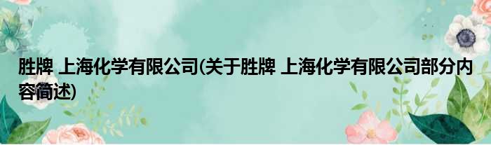 胜牌 上海化学有限公司(关于胜牌 上海化学有限公司部分内容简述)