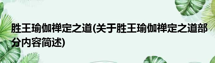 胜王瑜伽禅定之道(关于胜王瑜伽禅定之道部分内容简述)