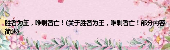 胜者为王,唯剩者亡!(关于胜者为王,唯剩者亡!部分内容简述)