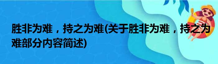 胜非为难,持之为难(关于胜非为难,持之为难部分内容简述)