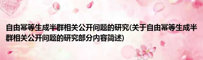 导读 大家好,今天小方来说说一篇关于自由幂等生成半群相关公开问题的研究,关于自由幂等生成半群相关公开问题的研究部分内容简述的文章,那么现