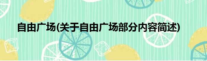 导读 大家好,今天小方来说说一篇关于自由广场,关于自由广场部分内容简述的文章,那么现在就为大家来简单介绍下,希望对各位小伙伴们有所帮助。