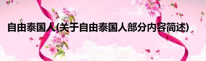 大家好,今天小方来说说一篇关于自由泰国人,关于自由泰国人部分内容简述的文章,那么现在就为大家来简单介绍下,希望对各位小伙伴们有所帮助。
