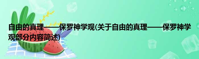 自由的真理——保罗神学观(关于自由的真理——保罗神学观部分内容简述)