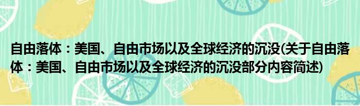 导读 大家好,今天小方来说说一篇关于自由落体:美国、自由市场以及全球经济的沉没,关于自由落体:美国、自由市场以及全球经济的沉没部分内容简