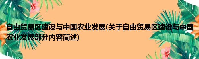自由贸易区建设与中国农业发展(关于自由贸易区建设与中国农业发展部分内容简述)