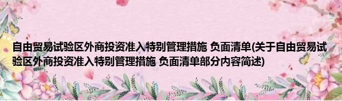 自由贸易试验区外商投资准入特别管理措施 负面清单(关于自由贸易试验区外商投资准入特别管理措施 负面清单部分内容简述)