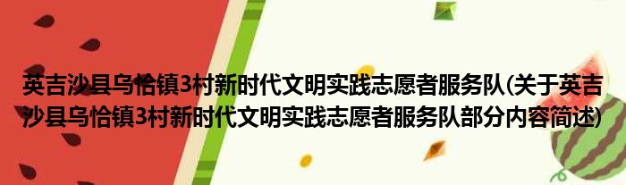 英吉沙县乌恰镇3村新时代文明实践志愿者服务队(关于英吉沙县乌恰镇3村新时代文明实践志愿者服务队部分内容简述)