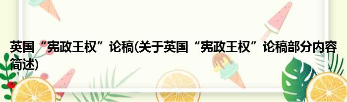 英国“宪政王权”论稿(关于英国“宪政王权”论稿部分内容简述)