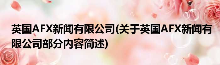 英国AFX新闻有限公司(关于英国AFX新闻有限公司部分内容简述)