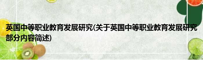 英国中等职业教育发展研究(关于英国中等职业教育发展研究部分内容简述)