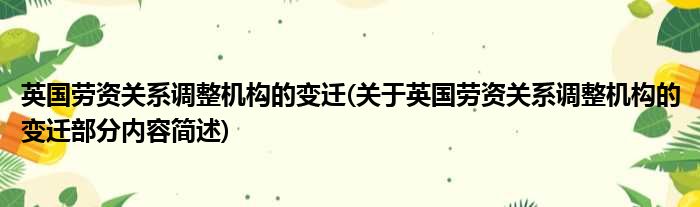 英国劳资关系调整机构的变迁(关于英国劳资关系调整机构的变迁部分内容简述)