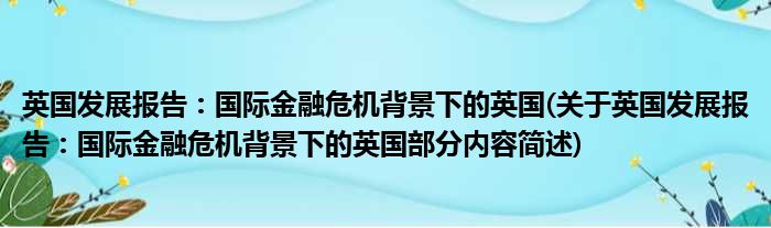导读 大家好,今天小方来说说一篇关于英国发展报告:国际金融危机背景下的英国,关于英国发展报告:国际金融危机背景下的英国部分内容简述的文章