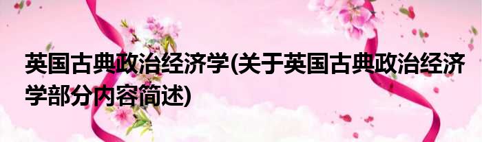 导读 大家好,今天小方来说说一篇关于英国古典政治经济学,关于英国古典政治经济学部分内容简述的文章,那么现在就为大家来简单介绍下,希望对各