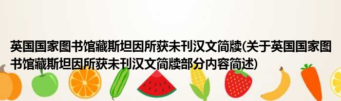 导读 大家好,今天小方来说说一篇关于英国国家图书馆藏斯坦因所获未刊汉文简牍,关于英国国家图书馆藏斯坦因所获未刊汉文简牍部分内容简述的文章
