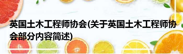 英国土木工程师协会(关于英国土木工程师协会部分内容简述)