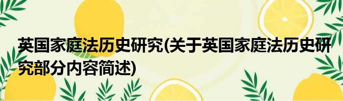 英国家庭法历史研究(关于英国家庭法历史研究部分内容简述)