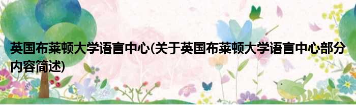 导读 大家好,今天小方来说说一篇关于英国布莱顿大学语言中心,关于英国布莱顿大学语言中心部分内容简述的文章,那么现在就为大家来简单介绍下,