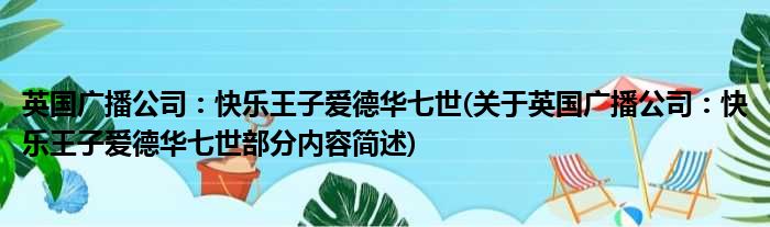 导读 大家好,今天小方来说说一篇关于英国广播公司:快乐王子爱德华七世,关于英国广播公司:快乐王子爱德华七世部分内容简述的文章,那么现在就