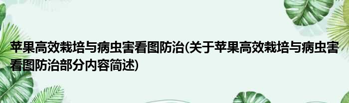导读 大家好,今天小方来说说一篇关于苹果高效栽培与病虫害看图防治,关于苹果高效栽培与病虫害看图防治部分内容简述的文章,那么现在就为大家来