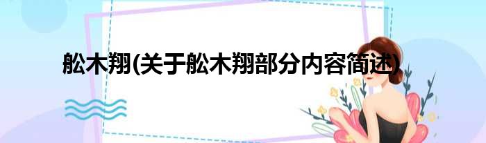 导读 大家好,今天小方来说说一篇关于舩木翔,关于舩木翔部分内容简述的文章,那么现在就为大家来简单介绍下,希望对各位小伙伴们有所帮助。