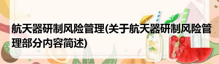 航天器研制风险管理(关于航天器研制风险管理部分内容简述)