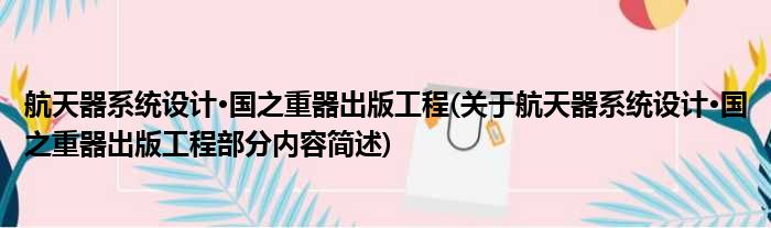 航天器系统设计·国之重器出版工程(关于航天器系统设计·国之重器出版工程部分内容简述)