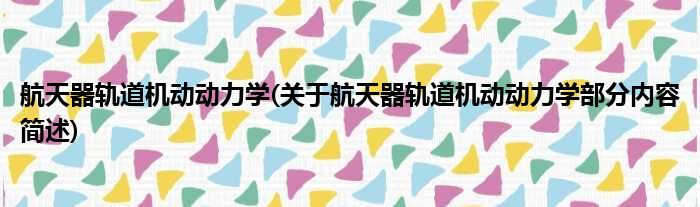 航天器轨道机动动力学(关于航天器轨道机动动力学部分内容简述)