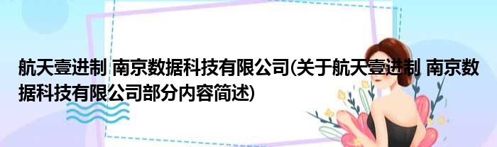 航天壹进制 南京数据科技有限公司(关于航天壹进制 南京数据科技有限公司部分内容简述)