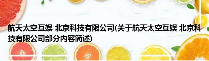 航天太空互娱 北京科技有限公司(关于航天太空互娱 北京科技有限公司部分内容简述)