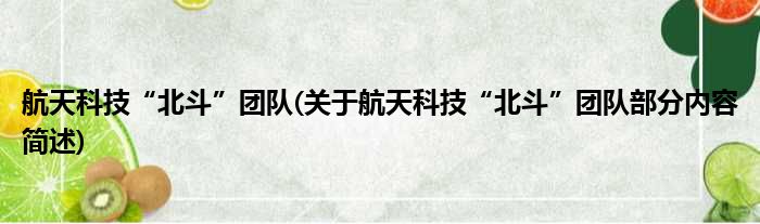 航天科技“北斗”团队(关于航天科技“北斗”团队部分内容简述)