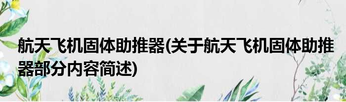 航天飞机固体助推器(关于航天飞机固体助推器部分内容简述)