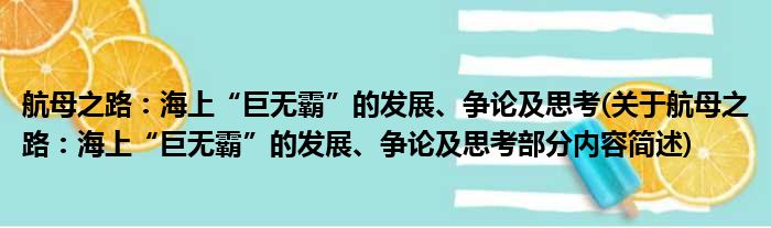 航母之路:海上“巨无霸”的发展、争论及思考(关于航母之路:海上“巨无霸”的发展、争论及思考部分内容简述)