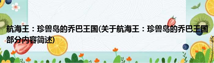 航海王:珍兽岛的乔巴王国(关于航海王:珍兽岛的乔巴王国部分内容简述)