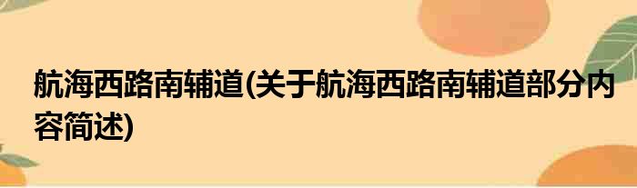 航海西路南辅道(关于航海西路南辅道部分内容简述)