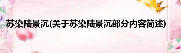 苏染陆景沉(关于苏染陆景沉部分内容简述)