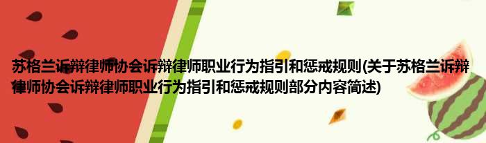 苏格兰诉辩律师协会诉辩律师职业行为指引和惩戒规则(关于苏格兰诉辩律师协会诉辩律师职业行为指引和惩戒规则部分内容简述)