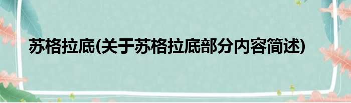 苏格拉底(关于苏格拉底部分内容简述)