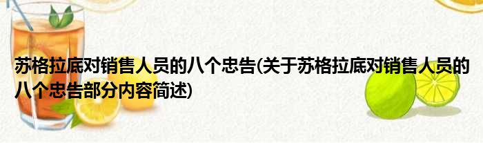苏格拉底对销售人员的八个忠告(关于苏格拉底对销售人员的八个忠告部分内容简述)