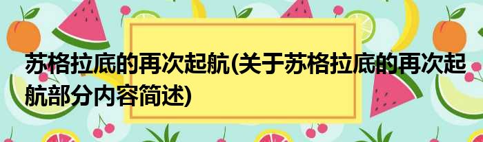 苏格拉底的再次起航(关于苏格拉底的再次起航部分内容简述)