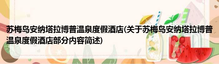 苏梅岛安纳塔拉博普温泉度假酒店(关于苏梅岛安纳塔拉博普温泉度假酒店部分内容简述)