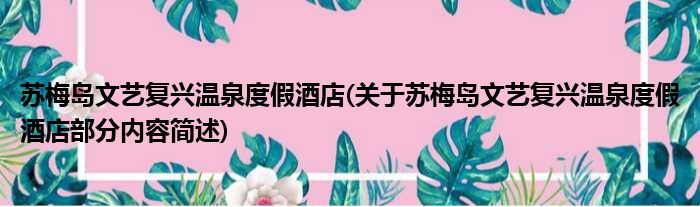 苏梅岛文艺复兴温泉度假酒店(关于苏梅岛文艺复兴温泉度假酒店部分内容简述)
