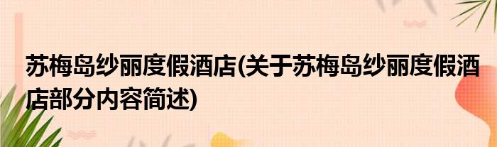 苏梅岛纱丽度假酒店(关于苏梅岛纱丽度假酒店部分内容简述)