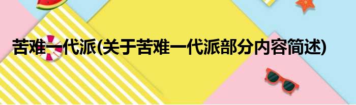 导读 大家好,今天小方来说说一篇关于苦难一代派,关于苦难一代派部分内容简述的文章,那么现在就为大家来简单介绍下,希望对各位小伙伴们有所帮
