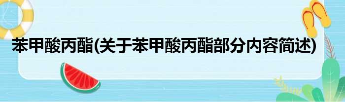 苯甲酸丙酯(关于苯甲酸丙酯部分内容简述)