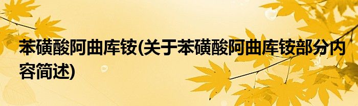 苯磺酸阿曲库铵(关于苯磺酸阿曲库铵部分内容简述)