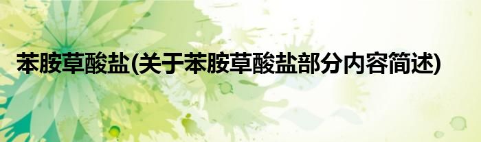 苯胺草酸盐(关于苯胺草酸盐部分内容简述)