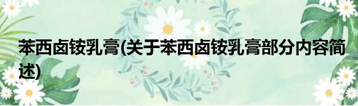 苯西卤铵乳膏(关于苯西卤铵乳膏部分内容简述)
